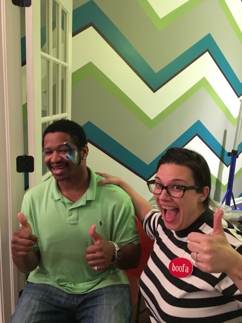 Hudson had a super cute monster-themed party to celebrate his first birthday. There was face painting fun, and there was even our hometown celebrity, Victor. Victor was just in a Super Bowl commercial celebrating his story. It was great meeting him and painting his design vision. 😉