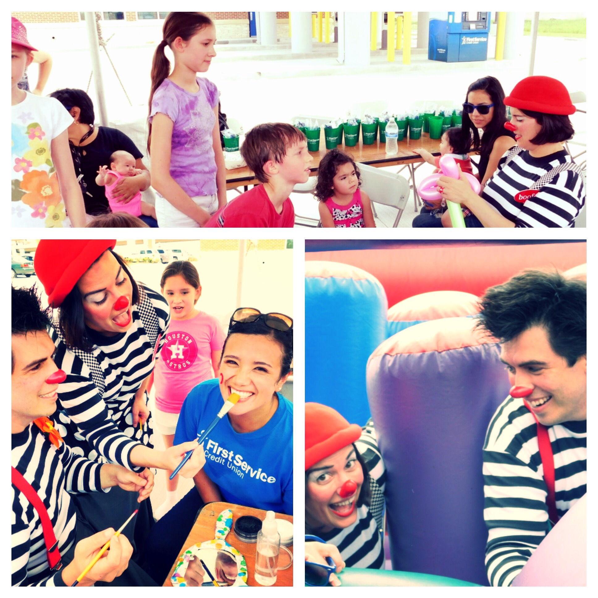 Clowning around at FSCU’s Katy branch grand opening! Face painting, balloons & inflatable fun! And Rick made it in the news! Thank you for always asking us back, Angela! :🔴)